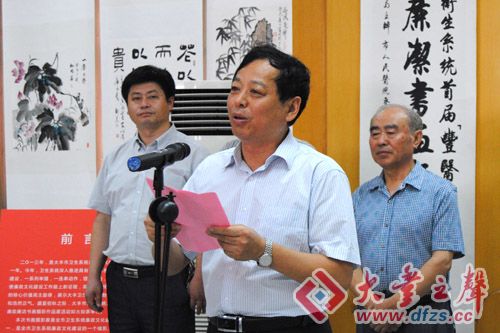 市领导黄正桂,市纪委副书记仲明桓,市老领导王立功,市卫生局长、党委书记徐向东,市人民医院柏正群院长,全市卫生系统各单位代表,各社区服务中心负责同志,民营医院院长,市直医疗卫生单位主要负责同志,卫生局机关全体同志参加了上午的开幕式。市领导黄正桂讲话,对大丰市卫生系统首届“丰医杯”廉洁廉政书画摄影作品展的如期举行表示祝贺,希望广大医疗工作者恪守医德,廉洁从医,全心全意更好地为大丰市民服务,为人民群众的健康事业服务。