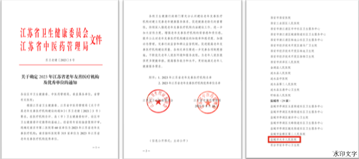 近日,江苏省省卫生健康委员会、江苏省中医药管理局发布《关于确定2023年江苏省老年友善医疗机构及优秀单位的通知》,经过医疗机构自评、县(市、区)级初审、市级审核、省级复核,认定盐城市大丰人民医院为江苏省老年友善医疗机构优秀单位。