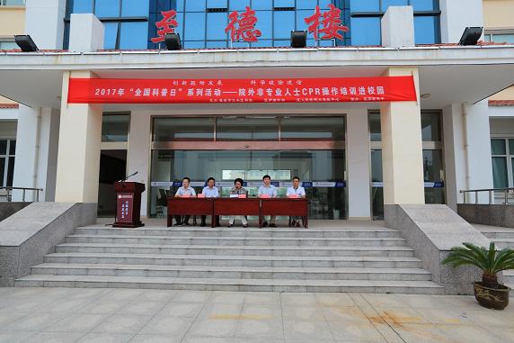 9月20日,以全国科普日宣传活动——“健康中国 科普助力”为主题的院外非专业人员成人心肺复苏操作培训进校园活动在大丰区初级中学举行。本次活动由大丰区科学技术协会主办,我院大急救中心承办,大丰区初级中学一、二年级2000多名师生参加了活动。