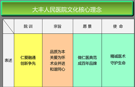 会上,蒋正前副院长宣读了《盐城市大丰人民医院医院文化建设五年发展规划》,并对医院文化建设重点工作责任分工进行了详细解析。他指出,2017年是我院医院文化建设深化推进之年,要按照医院文化建设总体要求,奋力推进精神文化、行为文化、制度文化以及环境文化建设,以文化力提升竞争力,形成文化管理医院的运行机制,全面展示医院的公益形象、服务形象,打造出有我院特色的医院文化。