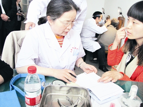 “耳朵听不清了,助听器带着难受。”来看病的是一位87岁的老奶奶,一旁的子女告诉记者,老人是离休干部,由于年纪大了,听力下降了,家人和她说话经常听不见。