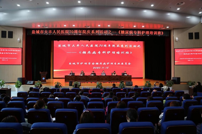 11月18日,糖尿病专科护理培训班在我院丰医会堂隆重举办。此次活动由盐城市护理学会主办,大丰区护理学会承办,盐城市护理学会理事长谭思源、区卫健委副主任沙文彪、我院副院长陈春涛参加了活动,盐城市护理学会糖尿病专业委员会委员以及来自各市、县、区近260余名护理人员参加了此次学习与交流。