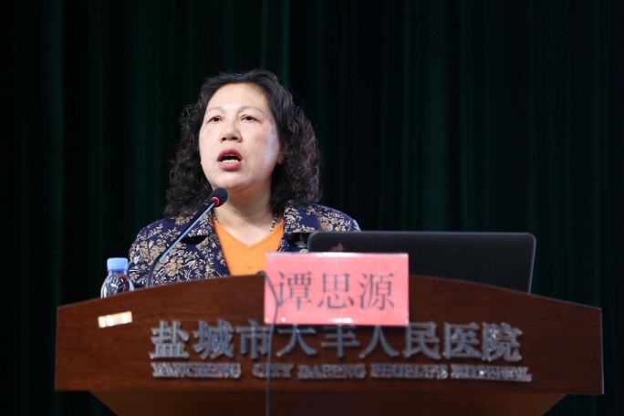 盐城市护理学会理事长谭思源结合院感要求为大家讲授了《安全注射》,谭理事长从安全注射的意义、风险环节的风险识别、防控要点和注射制度等几个方面阐述了安全注射的重要性,让大家从制度、院感的层面加以管理,保证患者、医务人员、社会的院感安全。
