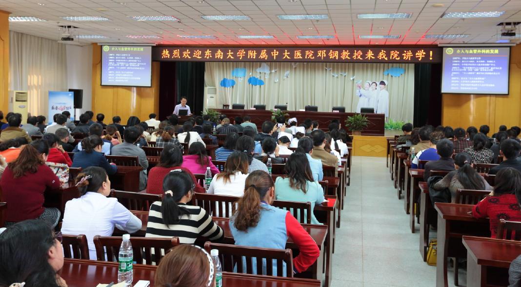 金秋十月,天高气爽,十月十八日下午,盐城市医学继续教育系列讲座—DSA临床应用推广培训班在门诊十楼学术报告厅隆重举行。讲座由我院副院长陈俊主持,东南大学附属中大医院硕士研究生导师邓钢教授、南京军区总医院神经内科殷勤教授、盐城市第三人民医院副院长、心血管内科主任医师孙万峰应邀进行了精彩的演讲。我院及市卫生系统其他单位医务人员300多人聆听了讲座,会议大厅座无虚席。