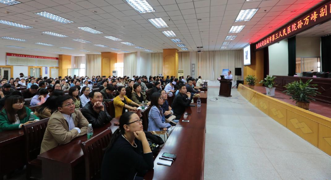 邓钢教授、殷勤教授、孙万峰副院长分别以“介入放射学的临床应用”“颈动脉狭窄的介入治疗”“心血管介入治疗经典病例分析”为题对心脑血管疾患的介入治疗进行了讲授,他们的讲课图文并茂,举例生动,结合视频,非常精彩,与会者纷纷表示受益匪浅。