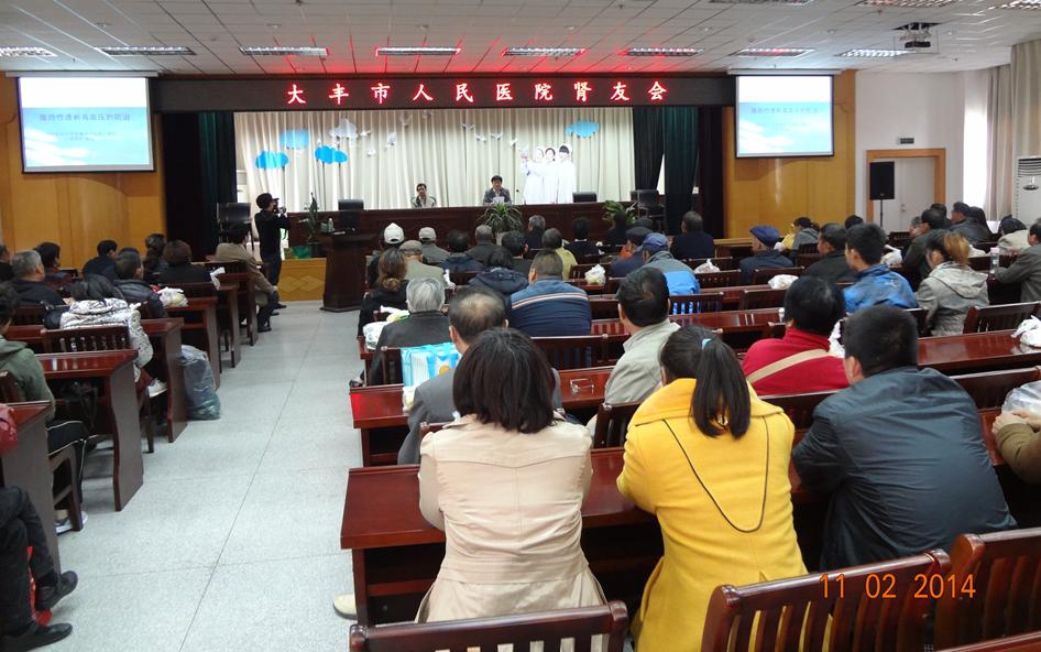 11月02日上午08:00,大丰市人民医院肾友交流会在我院十楼学术报告大厅举行。南京第一人民医院肾内科主任、硕士研究生导师楼季庄教授应邀出席了会议。来自全市广大肾病患友及我院相关医护人员100多人参加了本次交流会。