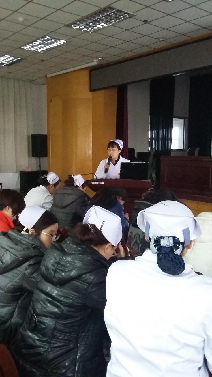 护理教学查房由护理部副主任唐玉新主持,首先由责任护士卢殿敏汇报了病人的病史、现存和潜在的护理问题、护理诊断、采取的护理措施和护理效果评价,接着心内科护士长周春红就冠心病及冠状动脉介入治疗及护理等相关内容,结合临床案例,通过启发式提问、图片演示、现场操作模拟等形式对相关专科知识进行解析、指导,并就该患者的护理问题、护理措施、专科评估工具的制定和使用进行了讨论,大内科科护士长房欣针对患者住院期间存在的护理问题提出了补充意见,特别强调要加强对照顾者的健康宣教及患者出院后的随访,扩展服务范围;唐主任就护理工作流程细节及科内新技术、新项目的学习和培训提出了指导性意见。