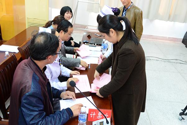 随后陈俊同志宣读了《中共盐城市大丰人民医院委员会党员代表大会选举办法》,提名监票人、计票人名单,全体党员代表表决通过。大会介绍了新一届党委委员候选人基本情况。监票人、计票人清点核实到会人数,递交清点报告,检查票箱,发放选票。通过无记名投票差额选举的方式,从9名候选人中差额选出了7名党委委员,选举结果为:柏正群、陈俊、潘育清、陈春涛、杨祯洁、单保安、郭雨7名同志当选为中共盐城市大丰人民医院委员会委员,组成新一届中共盐城市大丰人民医院委员会。