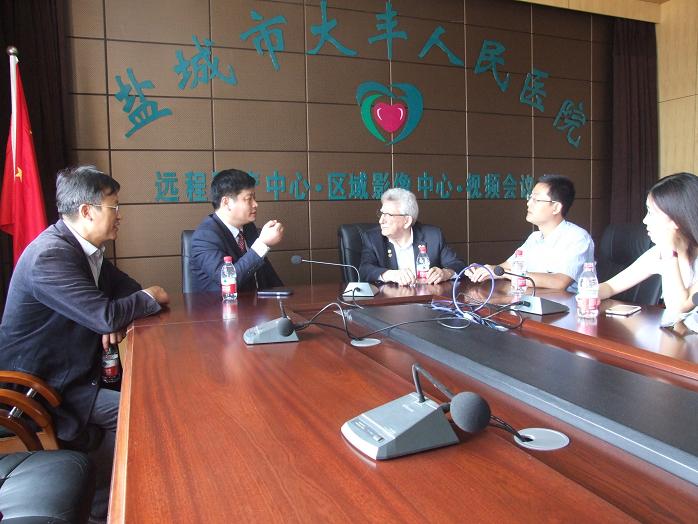 应我院邀请,Mario博士在上海市第十人民医院心内科专家陈维的陪伴下于上午八点来到我院进行参观访问,我院柏正群院长、李磊书记、严正平副院长热情接待了Mario博士一行,向外国友人介绍了我院的基本概况、发展现状、专科建设等方面的情况,并陪同参观了医院门诊大厅、DSA导管室、心内科病房,Mario博士对我院整洁的医疗环境、先进的医疗设备和有序的医院管理给予充分的肯定,尤其对医院DSA导管室大加赞赏。