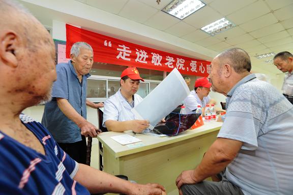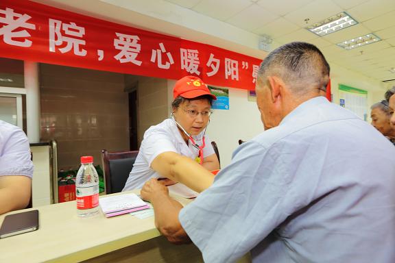 义诊现场,医务人员亲切询问老人们的身体情况,进行了体格检查、测量血压、发放健康知识宣传资料。义诊中,发现很多老人都患有高血压、白内障、不同程度的视力、听力下降等疾患,医务人员就每一位老人体检结果给出诊治方案,同时悉心嘱咐老人们定期到医院检查、按时服药,注意养成健康的生活方式,叮嘱老人们在季节交替时节,要留意天气变化,及时增减衣物,适时适量地锻炼,防止疾病发生。有几位老人的听力不好,医生一句简单的病情询问都要说好几遍他们才听清;有的老人手脚不太灵活,护士就挨个到他们的轮椅上检查;有好几位老人多年一直卧床不起,医生就到床前替他们诊治,老人们深受感动。