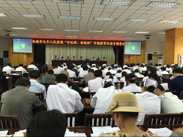 李书记紧紧围绕“守纪律、讲规矩”,深刻分析了党的纪律规矩的科学内涵和精神实质,用医疗行业的典型案例指出了新形势下加强党的纪律建设的重要性和紧迫性,分析了医院部分同志在守纪律讲规矩方面存在的的问题:如个别党员干部法纪意识、制度意识、规矩意识淡薄,利用职权搞权钱交易,影响恶劣;有的顶风违纪,违反八项规定和省、盐城市、大丰区有关作风建设的规定以及卫生行风“九不准”,搞不正之风等等。切实希望大家清醒看待存在的问题,增强守纪律讲规矩的自觉性和坚定性。