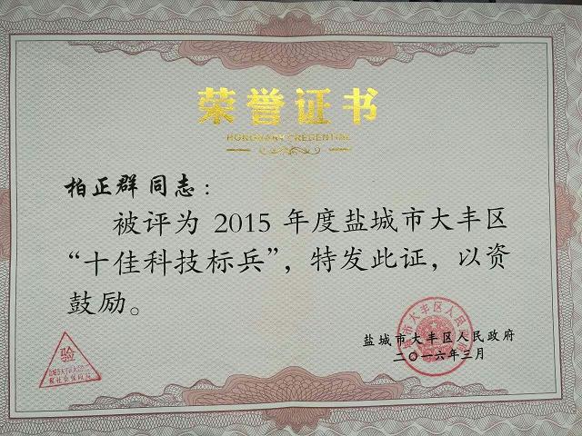 柏正群院长再获科技表彰 来源:本站原创 作者:佚名 发布时间:2016/05/14 点击数: 次 【字体:小 大】 在日前召开的全区2015年科技暨人才工作总结表彰大会上,柏正群院长被授予“十佳科技标兵”称号。这是近三年继获“盐城市十佳科技标兵”、“大丰优秀科技工作者”、“大丰十佳科技标兵”后,柏院长再获科技表彰。 分享到: 【打印正文】