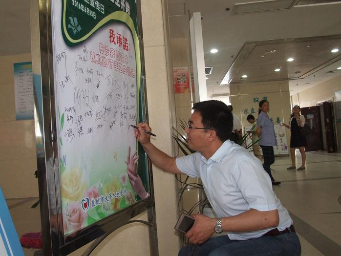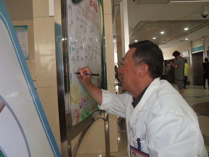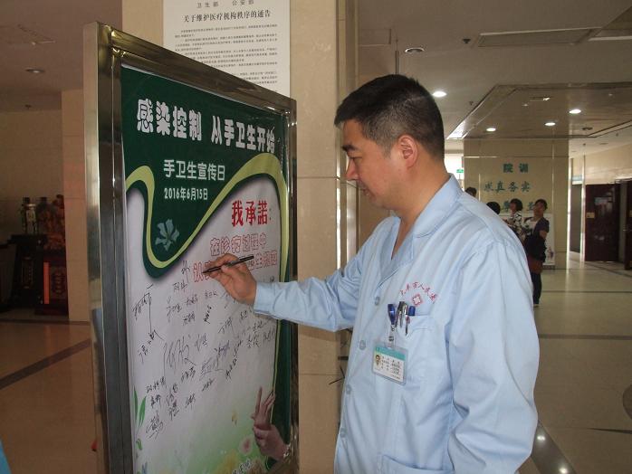 本次活动内容形式多样,通过在现场布置宣传展板与海报、利用LED大屏宣传手卫生规范相关知识、签名承诺、发放健康剪报等多种方式,在全院营造了内容丰富的手卫生宣传氛围。活动得到了院领导的高度重视与支持,医院领导亲临现场,柏正群院长带头在手卫生承诺板上签字,全院各科室医生、护士、物业人员纷纷前来参加。同时,各科室利用晨会时间进行科内手卫生知识培训,演示“七步洗手法”,所有医务人员签署执行手卫生规范承诺书。