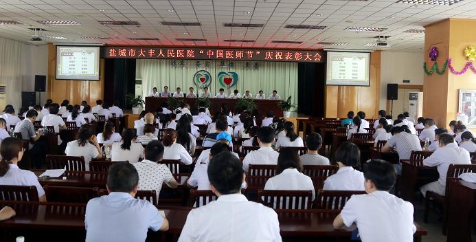 6月22日下午三点,为迎接“6·26”中国医师节,激励全院医生弘扬救死扶伤、全心全意为人民健康服务的行业精神,强化自尊自爱、奋发向上的意识,感受职业高尚和工作自豪感,维护医生职业形象,增强工作动力,营造全社会尊重医生的良好氛围,构建和谐的医患关系,大丰人民医院在门诊楼十楼会议室举行第6个中国医师节庆祝表彰大会。医院领导班子全体成员、科主任,全体医生近200人出席了大会。
