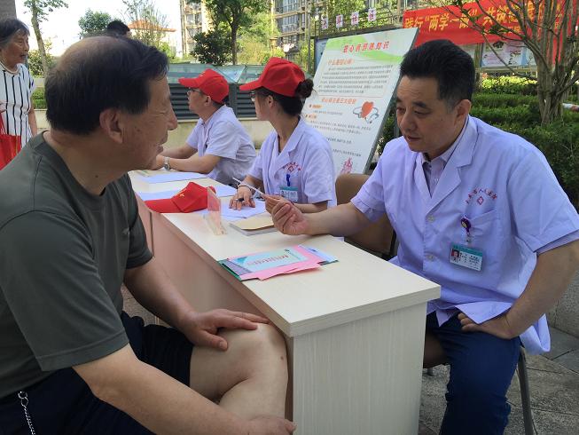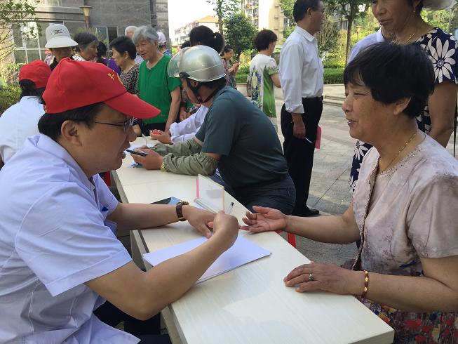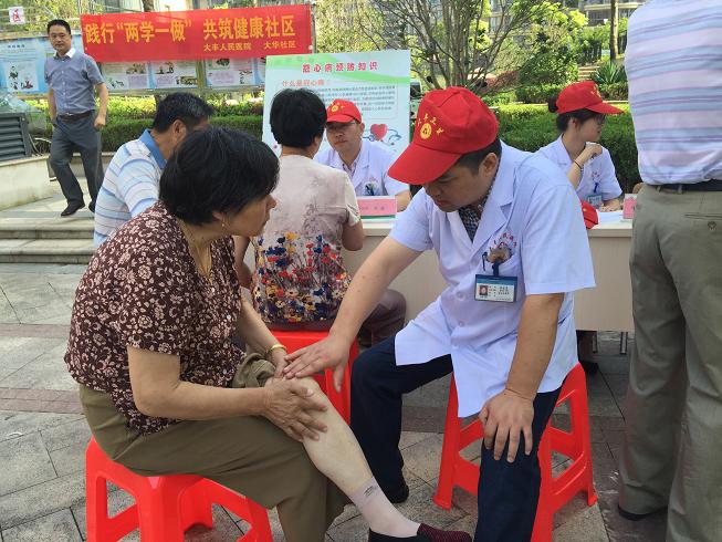 为进一步践行“两学一做”学习教育工作部署,充分发挥党员的先锋模范作用,我院积极开展“进社区义诊”活动。7月16日上午,院纪检书记杨祯洁带领由心内科、消化内科、内分泌科、疼痛康复科等科室组成的志愿者医疗服务队,走进大华社区进行“践行两学一做,共筑健康社区”为主题的义诊、健康咨询活动。参加本次活动的志愿者大多数为医院的在职党员。