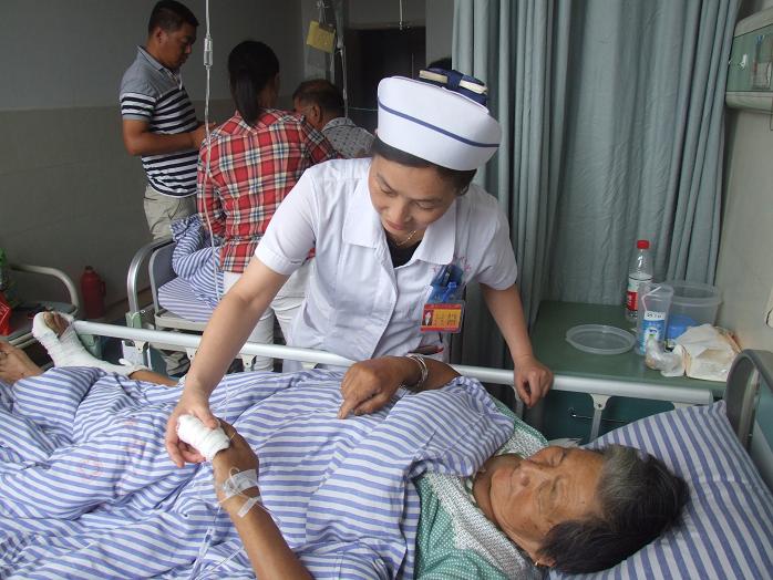 6月29日上午,12名党员护士在护理部沈冬梅主任的带领下走进了病房,走到了伤员身边,面对面,心贴心地拉起了家常,她们详细地了解伤员的病情以及生活方面的担忧和困惑,帮伤员一一建起了帮扶档案,鼓励他们以积极乐观的心态面对困难和疾病,告知伤员们我们医院会利用医疗资源为他们提供最大的帮助。受到帮扶的伤员听到党员护士们的温暖话语时,禁不住热泪盈眶,连声致谢。