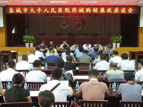 副院长潘育清、朱兴元分别作了重要讲话,强调指出我院对医药购销领域商业贿赂持零容忍态度,坚决治理、强力推进反腐倡廉工作。要求各药械公司代表和医院干部职工严格执行国家法律法规和有关规定;不断强化廉政意识,规范自身的行为,共同维护廉洁诚信的就医环境。国药控股盐城有限公司、苏州博雅医疗器械有限公司等4家药械公司负责人代表各药械公司发言,承诺大力支持和配合医院工作,新常态下依法经营,自觉规范医药购销行为,与我院共同维护医院和谐的医疗秩序。