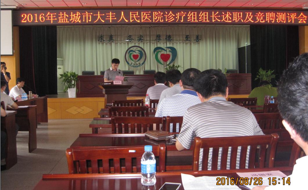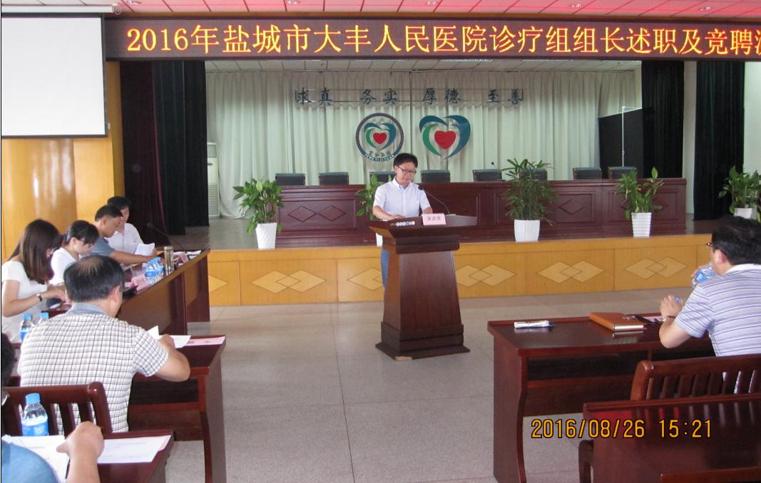 为进一步提升医疗服务水平,提高医务人员工作效率和积极性,激发员工主动性和责任心,切实落实主诊医师负责制,8月26日、27日下午,我院在门诊十楼举行了第三轮主诊医师述职暨竞聘测评会,分管院长陈俊主持会议,共57名诊疗组长参加了述职,2名竞聘主诊医师者进行了竞聘演讲。