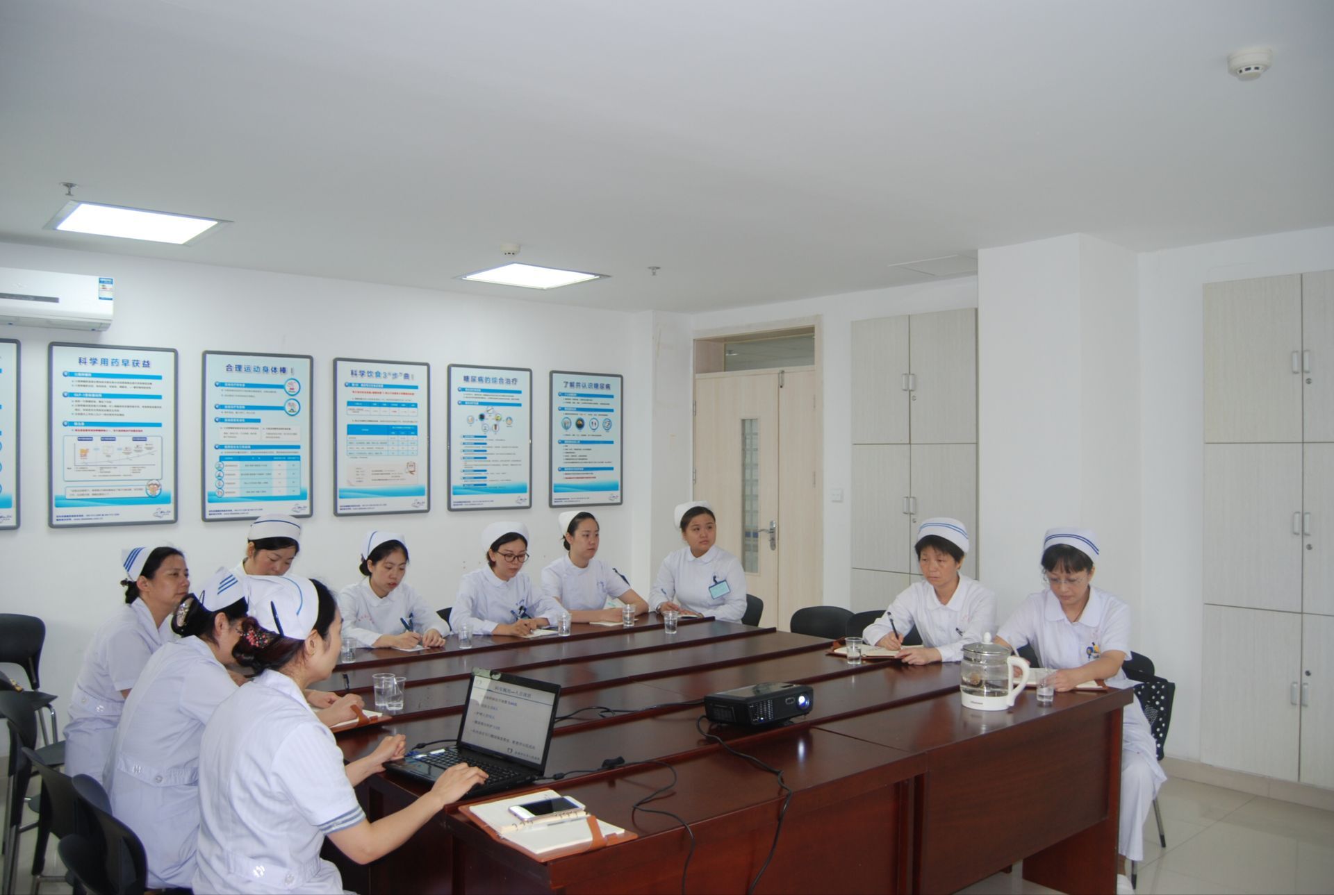 会上,陈瑜主任就医院概况、护理团队建设做了介绍;省级糖尿病专科护士、内分泌科护士长徐丽对科室概况、糖尿病专科护理发展及糖尿病专科护士实习基地成立以来开展的工作向各位学员及与会人员做了详细汇报;会后,各位学员由徐丽护士长带领,进行病区环境的熟悉与了解,进入临床实践。