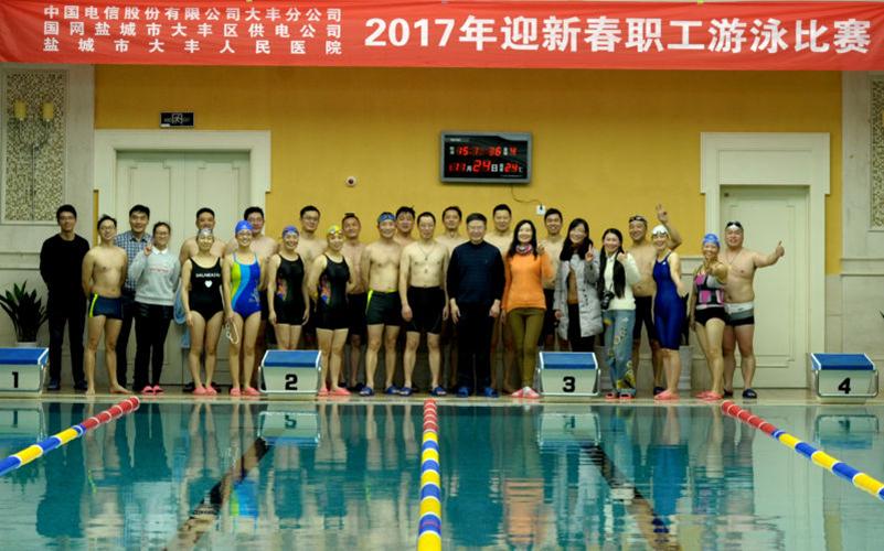 我院和友好单位联谊举办迎新春游泳比赛 来源:本站原创 作者:佚名 发布时间:2016/12/29 点击数: 次 【字体:小 大】 12月22日,我院和中国电信股份有限公司大丰分公司、国网盐城市大丰区供电公司联合举办了“2017年迎新春职工游泳比赛”。联谊赛共设8个单项,共24个奖项,经过激烈的比赛,我院获得13个奖项,其中女子囊括了女子项目的所有奖项。通过联谊交流,我院游泳队的勤奋、认真、拼搏、争先的队风,给大家留下了深刻的印象。此次游泳联谊赛不仅满足了我院游泳爱好者的需求,而且增加了与友好单位间的交流,增进了彼此间的友谊,进一步丰富了医院文化。 分享到: 【打印正文】