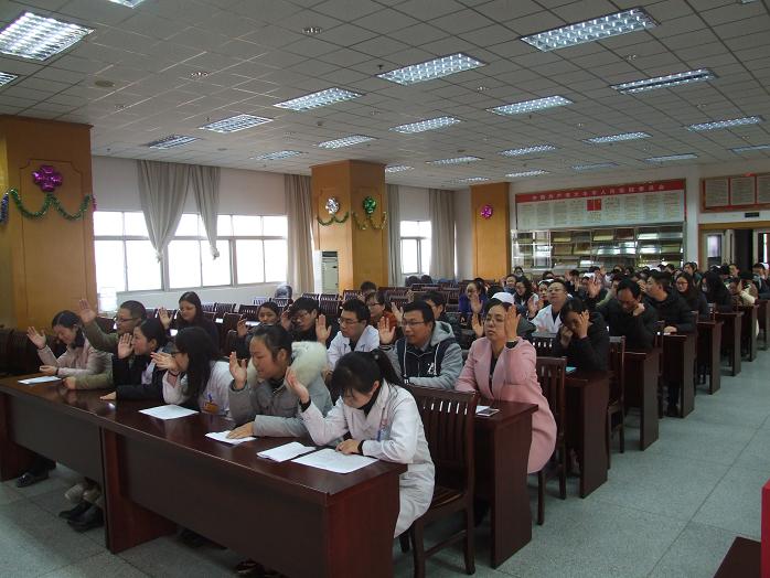 会议由院团委副书记曹道军主持,院党委书记李磊、纪检书记杨祯洁、院团委负责人以及来自全院各科室的66名团员代表参加了会议。