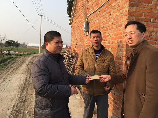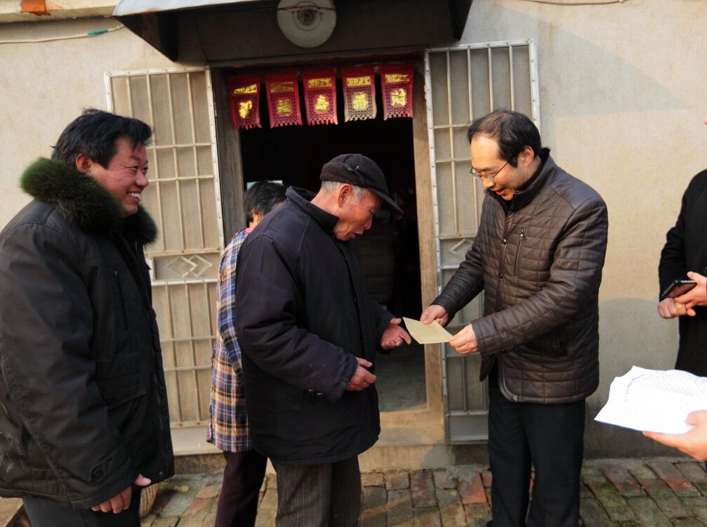 结对帮扶节前忙,牵手致富落实处 来源:本站原创 作者:佚名 发布时间:2017/01/14 点击数: 次 【字体:小 大】 在2017年春节即将到来之际,为将党员干部“牵手致富”结对帮扶低收入农户活动进一步落到实处,1月13日,我院党员干部来到挂钩的刘庄镇润民村,对“一对一”帮扶的32户困难群众集中开展春节前帮扶慰问活动。 活动中,院长柏正群、党委书记李磊等人深入到各自帮扶对象家中,详细了解其家庭现状,仔细询问需要帮助解决的“急难愁”事项,并根据帮扶对象的实际状况商讨帮扶措施,力求做到扶在点上、帮到根上,努力争取尽早脱贫致富。走访中一并为32户困难家庭送去节日慰问金,确保每位困难村民都能度过一个温暖祥和的春节。 分享到: 【打印正文】