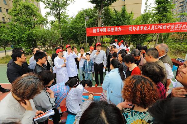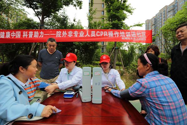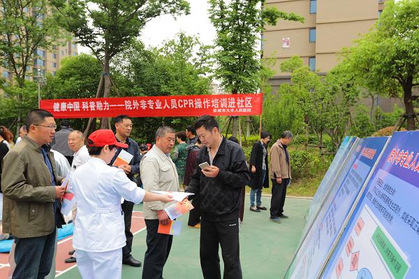 5月20日,为期一周的2017年全国科技周暨江苏省第二十九届科普宣传周拉开帷幕,为积极响应“健康中国、科普助力”活动的主题,我院青年志愿者和专科护理人员在医院团委、大急救中心、社区服务科及营养科的大力支持下,来到大丰区海棠花园小区举办了“CPR操作培训进社区”活动。
