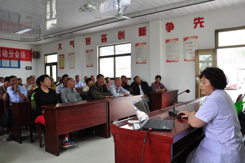 在义诊活动分会场,村民们聚精会神地听健康教育讲座