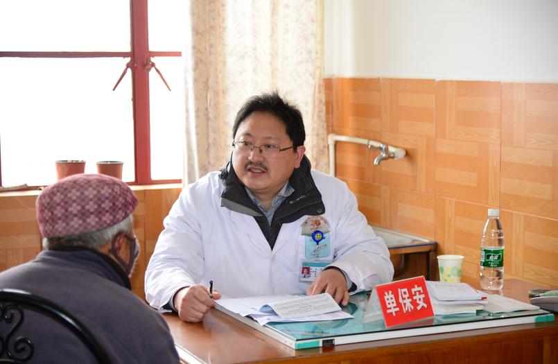副院长、普外科主任医师单保安在义诊中