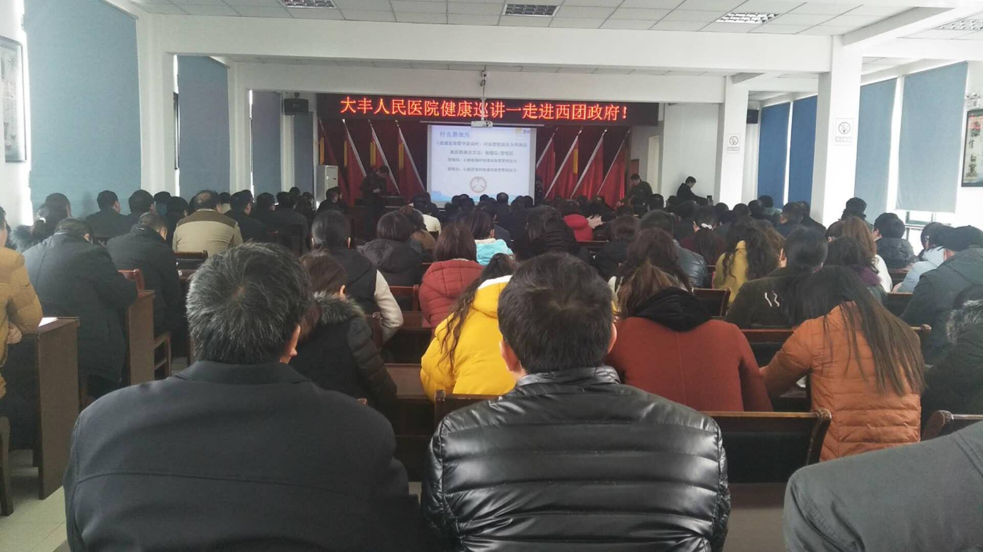 我院健康巡讲走进西团政府 来源:本站原创 作者:佚名 发布时间:2018/03/20 点击数: 次 【字体:小 大】 心内科戴午阳主任讲解《高血压病》的病理、分类、诊治方法 消化内科郁卫洲主任讲解《胃癌》发病原理及治疗方法 内分泌科胡慧萍围绕《糖尿病》图文并茂地向与会者介绍了糖尿病的基本知识、糖尿病的预防措施、糖尿病的饮食和药物治疗方法 讲座现场 分享到: 【打印正文】