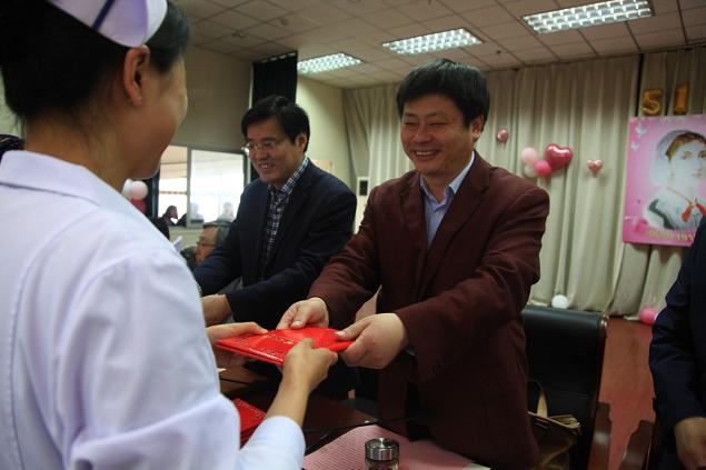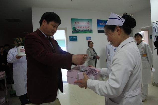 仪式结束后,柏正群院长率全体领导班子成员到健康院区各护士站送上贺卡和礼物,并和护士代表亲切座谈,送上了节日的慰问和关怀。