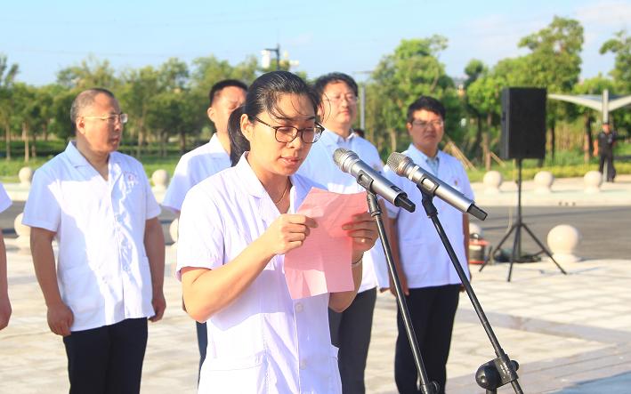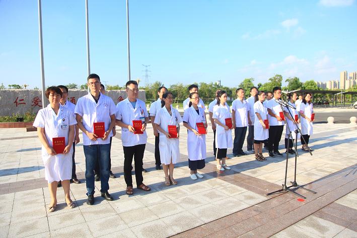 新入职医师代表侯传涛,毕业于黑龙江牡丹江医学院临床专业,他为了实现自己的理想与目标,为了能为社会多做贡献,来到距离家乡2300多公里的大丰。他在发言中说,在这个神圣的节日里,为自己作为一名医生感到光荣。“在接下来的工作和学习中,我会挑起救死扶伤的责任,努力向领导和同事们学习,补充自己的知识容量,提升自己的医学技能,爱岗敬业、恪守医德,争取为更多的患者消除病痛。我坚信我能做到爱岗敬业、诚实守信、办事公道、服务群众、奉献社会,为成为一名优秀的医师而奋斗终生。”