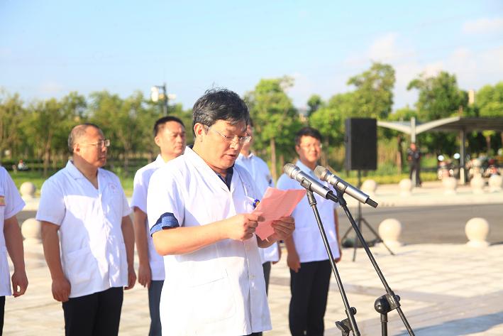 “今天,我们在这里共同庆祝中国首届‘医师节’,这是我们医师同仁们共同的节日。我们举办这次活动就是让我们全体医师感受职业高尚,享受节日快乐,增强工作自豪感,同时,也是为了鼓励广大医师学习典型,争先创优,努力提高技术和服务水平,更好的为人民健康服务。”柏正群院长在国旗下向全体医生寄语:近年来,医院各项工作取得了全面的发展:就医环境全面改善,医护质量明显提高,专科建设稳步发展,临床路径强力推进,优质护理示范病区遍地开花,人力结构逐步合理,社会效益稳步攀升,医院的核心竞争力得到了长足的提高。这些成绩的取得,源自于全院职工的无私奉献、源自于人民群众的信任,更与日夜战斗在救死扶伤第一线的医师们密不可分。在医院的医师队伍中,有老当益壮、年过半百仍坚持战斗在临床一线的老专家、老同志;有年富力强,承前启后,勇挑重担的中青年砥柱;有雏燕展翅,跃跃欲试,斩露头角的杏林春苗。他们中有许多令人感动的先进事迹,他们顽强拼搏,不断进取,对技术精益求精;他们爱岗敬业,无私奉献,视病人的利益高于一切;他们廉洁自律,视病人如亲人,体现出了高超医术与高尚医德的完美结合。今后,医院将以“三级医院创建”、“一院两区”为契机,统一思想,提高认识,以推动医院健康发展为工作总目标,狠抓医疗质量与安全,加强管理和革新,从而实现新的跨越式发展。