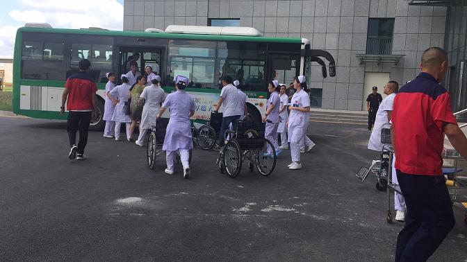 8月24日清晨6:00,第一批搬迁科室已整装待发,轮椅、担架、仪器设备准备齐全,转运小组、接应小组的医护人员全部就位。护士长与转运小组一起核对患者,将患者及家属送至相应的等候区,此时,120救护车和大巴已准备到位,分别停靠在相应的病区楼下等候。在医护人员的引导下,轻症患者、家属和负责途中监护的医护乘坐大巴,重症患者在跟车医护人员的护送下搭乘120救护车。护士长和转运小组再次核对人数无误后,救护车和大巴陆续出发,新院区接应组与跟车医护人员保持着密切联系,随时关注车辆进程,15分钟后按指定路线顺利到达新院。