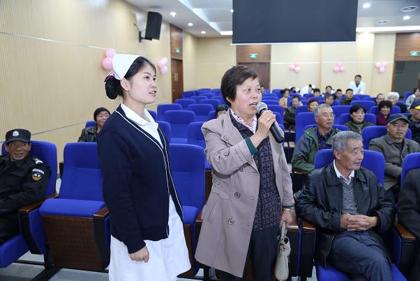 本次活动由内分泌科护士长、省级糖尿病专科护士徐丽主持。首先由内分泌科胡惠萍主任授课,她以《糖尿病的居家护理》为题,从饮食、运动、监测等方面作了深入浅出的讲解。接着,内分泌科的护士们带着糖友们一起练习了中医健康养生操“八段锦”,一起观看了小品《得了糖尿病我该怎么吃》。养生操简单易学,小品生动有趣,将联谊会推向了高潮,受到糖友们的欢迎和好评,大家纷纷表示在运动和笑声中学到了知识。