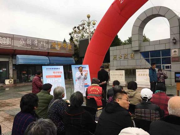11月16日是第17个“世界慢阻肺日”。慢阻肺,是慢性阻塞性肺疾病(COPD)的简称,今年世界慢阻肺的主题是“早防早治,始终不晚”。为了提高人们慢性阻塞性肺病早预防、早治疗的意识,我院呼吸内科的“欢畅之家”在大丰区施耐庵公园门口举办了“2018年世界慢阻肺日”科普宣传活动。