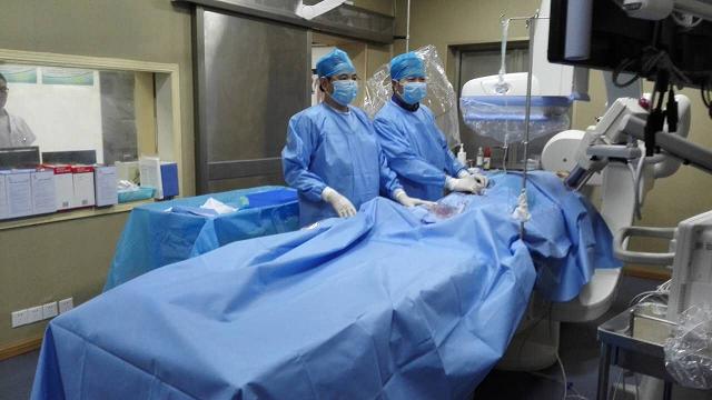 我院介入治疗始于1997年,是本地区较早独立开展介入手术的医院。二十年来,开展介入诊疗手术二千余例,得到了患者及同行的一致好评。已经成功开展的项目有:大咯血(支气管动脉栓塞术)、肺癌(支气管动脉化疗/栓塞术)、食道吻合口狭窄扩张术、食道支架置入术、肝癌/肝转移性肿瘤(肝动脉化疗/栓塞术)、肝血管瘤(肝动脉栓塞术)、肝外伤及肿瘤出血(肝动脉药物灌注及栓塞术)、胃癌(胃动脉化疗/栓塞术)、消化道出血(药物灌注/动脉栓塞术)、营养管置入术、脾功能亢进/脾外伤出血(脾动脉栓塞术)、胰腺癌(胰腺动脉化疗术)、肾癌(肾动脉化疗/栓塞术)、肾血管平滑肌脂肪瘤(肾动脉栓塞术)、肾外伤或穿刺出血(肾动脉药物灌注及栓塞术)、妇科盆腔大出血(髂内动脉药物灌注及栓塞术)、子宫肌瘤(子宫动脉栓塞术)、宫颈癌(子宫动脉化疗/栓塞术)、异位妊娠(子宫动脉药物灌注及栓塞术)、腔静脉滤器置入术、股骨头坏死(动脉灌注扩血管及溶栓药物)、四肢恶性骨肿瘤(动脉药物灌注及栓塞术)、下肢深静脉造影(步径术)、下肢动脉造影、选择性动脉/静脉造影术等。