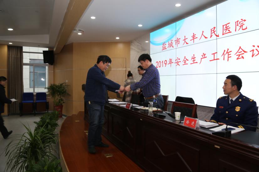 同日下午,医院召开2019年安全生产会议,分管安全工作的副院长郭雨分析了健康院区、幸福院区安全生产形势,部署了当前安全生产工作;区消防大队徐进大队长作了医疗卫生系统安全生产警示教育;科室主任、护士长签订并递交了安全工作目标责任书。