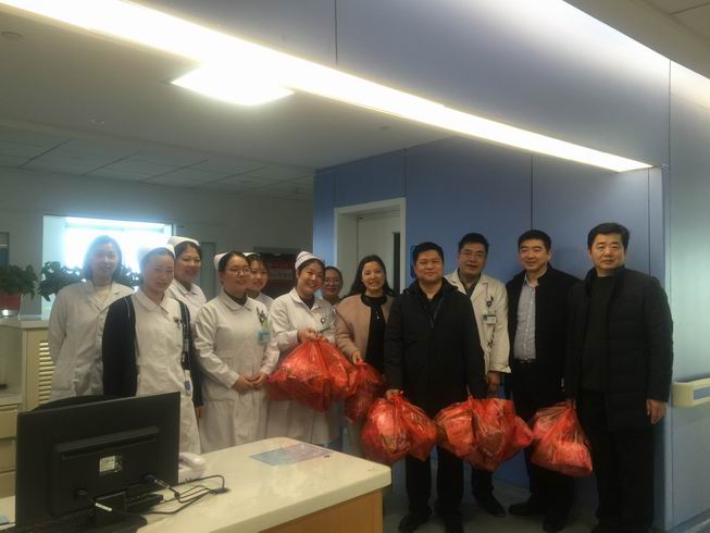 “新年本是一家团聚的日子,今天你们不能回家过年,是一种遗憾,希望有我们的陪伴,有医生护士的守护,能让大家感到放心、平安。”院长的嘘寒问暖让一线医护人员和住院患者倍感温暖。大家纷纷表示,在医院也感受到了家的温暖和年的味道。