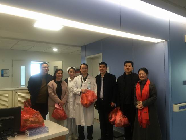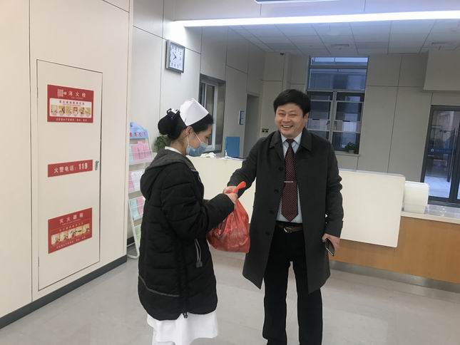 医院领导在这个特殊的日子里没有忘记工作在一线中不能回家的医护人员,党委书记、院长柏正群率领全体领导班子成员及职能科室负责人带着节日礼包分组来到各科室,看望慰问坚守岗位的职工,和他们共迎佳节,让他们感受到家的温暖。一句句朴实的“新年好”,表达对新春佳节的问候;一句句真诚的“辛苦了”,承载对岗位坚守的感谢。
