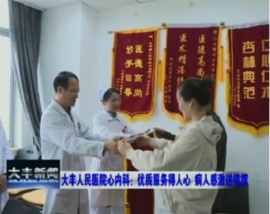 当天,蔡先生因突发胸痛由120送入我院急诊科,到达时已出现心律失常、休克等现象。时间就是生命,我院胸痛中心立即启动胸痛病人就诊绿色通道,经检查初步确诊患者为急性前壁心肌梗死,心内科刘正东主任带领介入团队会诊后建议立即行急诊介入手术,家属求治态度积极,患者被紧急转至导管室,不到5分钟时间,刘正东主任团队已做好术前准备,为患者进行PCI。术中,患者血压一再下降,心电波形一度发生室性改变,介入团队沉着冷静的积极抢救,穿刺、放导丝、抽吸血栓、升压、纠正心律失常,紧要关头顺利在前降支植入支架一枚,就是这枚小小的支架瞬间让患者的胸痛症状得到缓解。术后入住CCU,医护人员紧密配合,吸氧、心电监护、每30分钟到60分钟的血压测量,妥善的术后治疗和护理,让患者和家属原本焦虑紧张的心情放松了许多。患者及家属连连称赞,对治疗效果非常满意,于是出现了文中开头送锦旗的一幕。