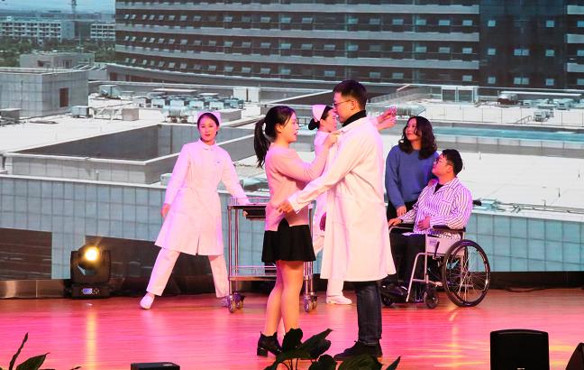 晚上7时,舞蹈《中国喜事》拉开此次文艺晚会的序幕。气势磅礴的旋律带动了现场的气氛,激发了现场各位的“赤子”之心。在灯光璀璨、背景丰富的大舞台上,医院员工尽情绽放青春风采,热情激情才情碰撞交织。舞蹈《风筝舞》、情景剧《患难兄弟》、笛子独奏《丰医竹韵》、现代京剧《浑身都是胆雄赳赳》等节目依次上演,让现场瞬间融化成欢乐的海洋。小品《德病求医》因其独特的创意、幽默诙谐的表演,赢得现场阵阵掌声。此次文艺晚会亮点频现,涌现出一批具有时代特征、深受观众喜爱的节目。无论是舞蹈、器乐、还是情景剧、小品等均具有较强的思想性和艺术性,情景剧《执着》、《医路有你,守护有我》、礼仪展示《天使赞歌》都让现场观众深受感动。