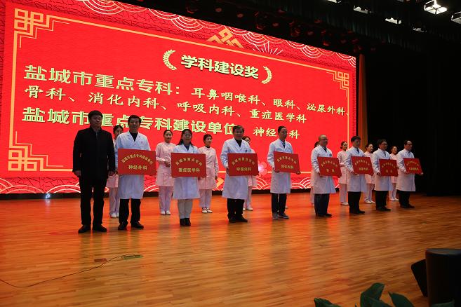 重点专科建设成绩显著。耳鼻咽喉科、眼科、骨科、呼吸内科、泌尿外科、消化科、以及重症医学科顺利通过今年的重点专科评审,神经外科被评为盐城市重点专科建设单位。今年新成立名医工作室6个,目前共有13个名医工作室。名医定期来院坐诊、手术、查房,进一步提升了各科室的建设能力。2019年教学科研也有了可喜的成绩,大丰区科研立项8项,盐城市级科研立项9项。发表省级及以上刊物论文 90篇。获得2019年盐城市医学新技术引进奖4项,其中一等奖1项,二等奖3项。