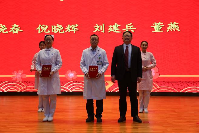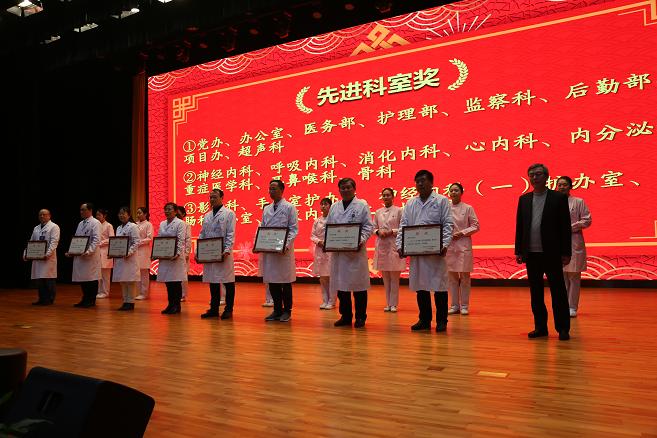 会上,院党委副书记、副院长陈俊宣读了表彰决定。2019年共评选出医务部、护理部等21个先进集体、盐城市医学新技术引进奖以及医院发展特别贡献奖等170余名先进个人。耳鼻咽喉科主任董晓斌、盐城市医学新技术引进奖二等奖获奖者胡顺明、护理主任沈冬梅、影像科主任杨卫、呼吸内科(二)护士单燕芳分别代表受表彰的先进集体和个人发言,他们纷纷表示将不忘初心、珍惜荣誉、再接再厉,全身心投入到工作中,为医院发展再立新功。