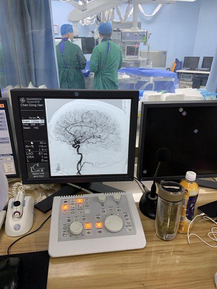 该患者目前生命体征平稳,右腹股沟压迫器已松解,局部无出血,术后效果较好,患者及家属都表示很感谢。该例手术的成功开展,是我院微创介入手术的一项新突破,也标志着我院神经内科治疗技术迈上了一个新台阶。