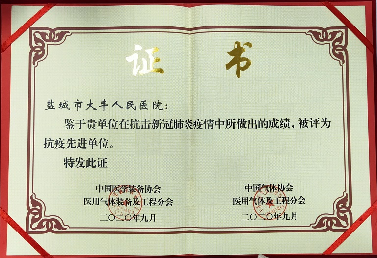 我院荣获全国医用气体行业医院抗疫先进单位称号 来源:本站原创 作者:佚名 发布时间:2020/09/15 点击数: 次 【字体:小 大】 由中国医学装备协会医用气体装备及工程分会、中国气体协会医用气体及工程分会主办的2020年会于9月6日召开,我院荣获全国医用气体行业医院抗疫先进单位奖项。 本届抗疫先进单位评选,全国共有十九家医院获得该奖项,我院是这十九家医院中唯一一家县级医院。 作为大丰区抗击疫情的主阵地,今年出现疫情以来,无论是支援湖北黄石,还是大丰区的疫情防控工作,我院始终都冲在第一线,在疫情防控工作中发挥了重要作用,受到了社会各界广泛的称赞和人民群众的认可。 分享到: 【打印正文】