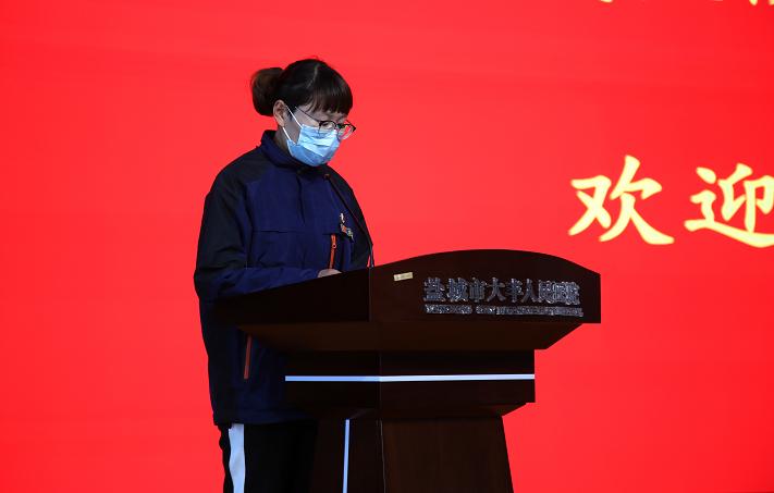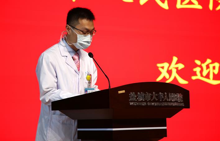 医生代表、肝胆外科主治医师杨晓磊在凯旋大会上发言