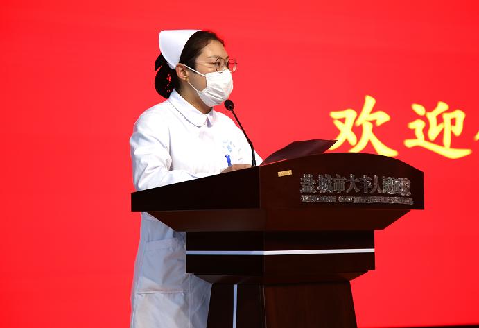 护士代表、胃肠外科主管护师王薛梅在凯旋大会上发言