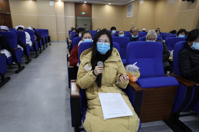 会上,杨祯洁介绍了近年来医院在设施设备、人才培养、学科建设等方面的发展状况,同时恳请各位病患及家属开诚布公地谈谈在住院期间对我院医疗水平、服务态度、住院环境等方面的感受,希望大家多提不足,以便更有针对性地改进医院管理中存在的问题。患者家属们一一发言,大家对医院各方面管理表示很满意,普遍认为医务人员水平高、态度好,有些家属还点名表扬了一批医生护士。在肯定医院各项工作的同时,与会患者家属也结合自己的亲身体会,对医院目前存在的问题提出了中肯的意见和建议,比如建议医院增设无线网,方便病患和亲朋好友沟通交流,建议食堂盒饭增加分量,有些干体力活的家属吃不饱等等。针对患者家属提出的问题或建议,医患双方进行了互动交流,对能及时给家属解释答疑的问题,相关负责人立即进行了解释。