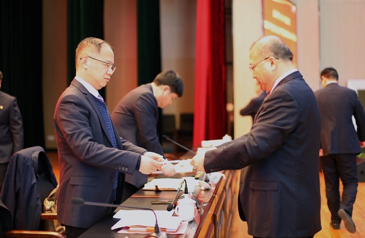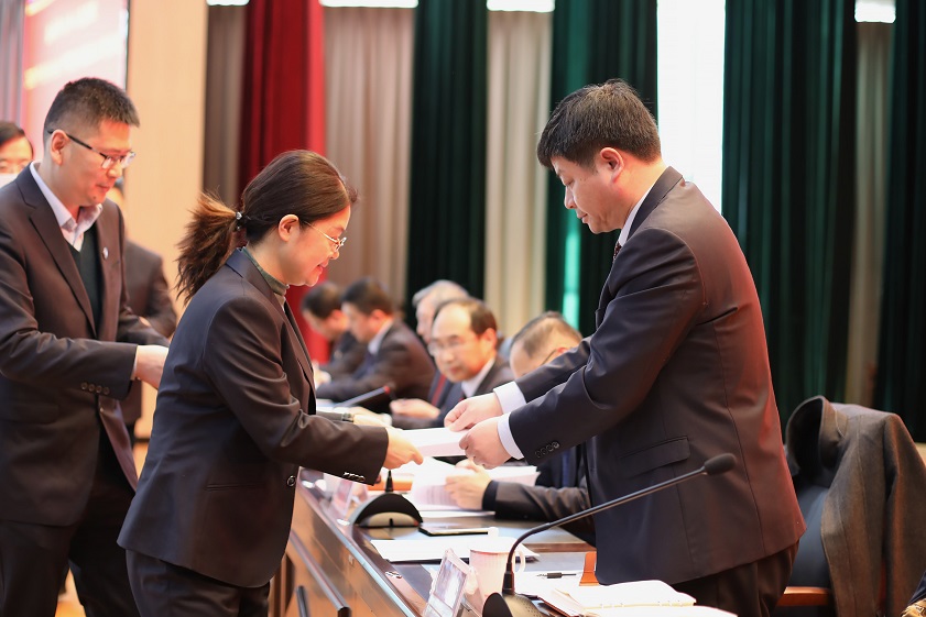 院领导向党委书记张袁丰递交党风廉政建设责任状
